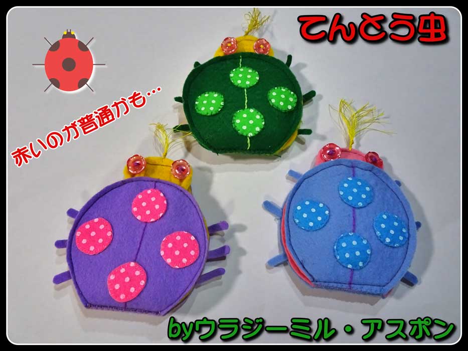 何で3つもあるのかと言うと、一緒に「てゆく」さんと手芸をやるまえに予行練習でテントウ虫を事前に作りました。ミシン使うのも久々過ぎて自信がないから練習したのです。