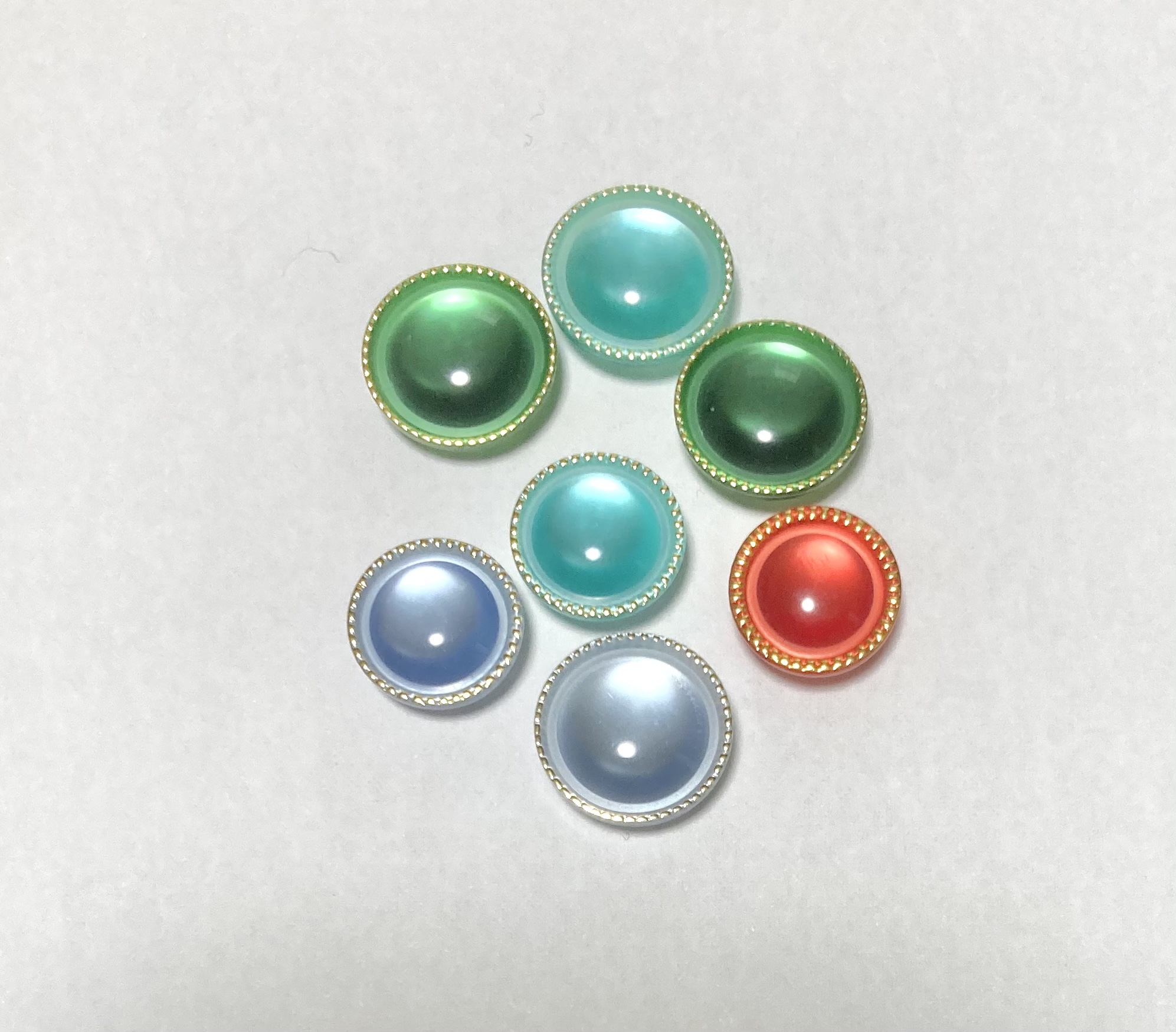 下の写真は昭和当時物のボタンです。車で通りがかった昔ながらの手芸用品店で購入しました。シンプルですが色味も今の物とは少し違うような趣があって気に入っていましたが、使う機会がなかったので今回昭和の手芸で使うことで日の目を見ることとなり嬉しいです。長い間眠っていたので…。